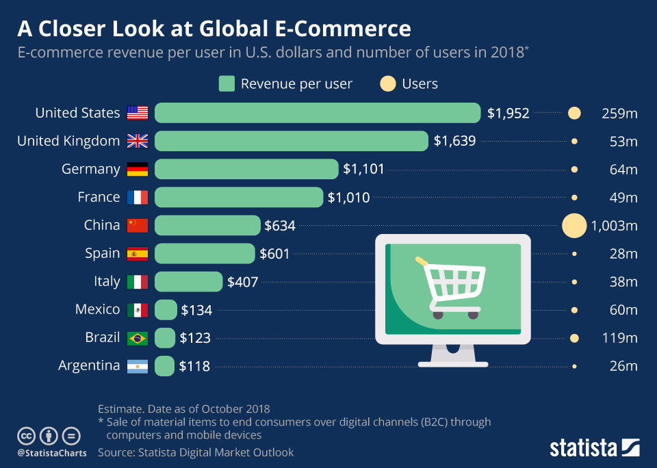 Feldman, S. (November 26, 2018). A Closer Look at Global E-Commerce [Digital image]. Retrieved July 11, 2021, from https://www.statista.com/chart/16215/global-ecommerce-revenue/